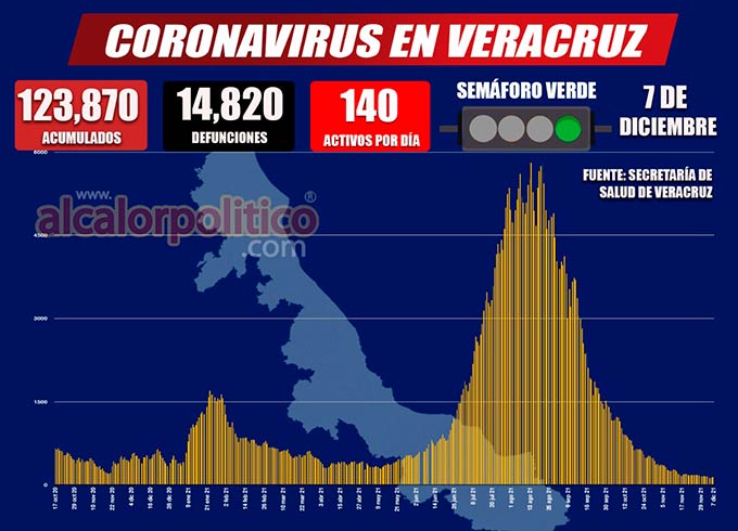 Después de practicar 273 mil 922 estudios, la Secretaría de Salud (SS) ha confirmado 123 mil 870 (+37 nuevos) casos de COVID-19 en Veracruz, de los cuales 140 se consideran activos y 186 sospechosos actuales.