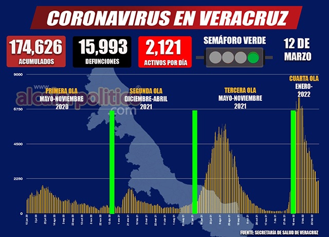 Este sábado, Veracruz registró 561 nuevos casos de COVID-19 y 24 muertes