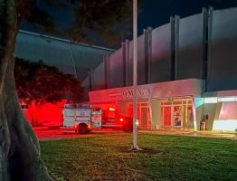 Bomberos fueron alertados cerca de la medianoche del martes que estaba saliendo fuego en el techado del complejo deportivo Omega, por lo que urgía su presencia.