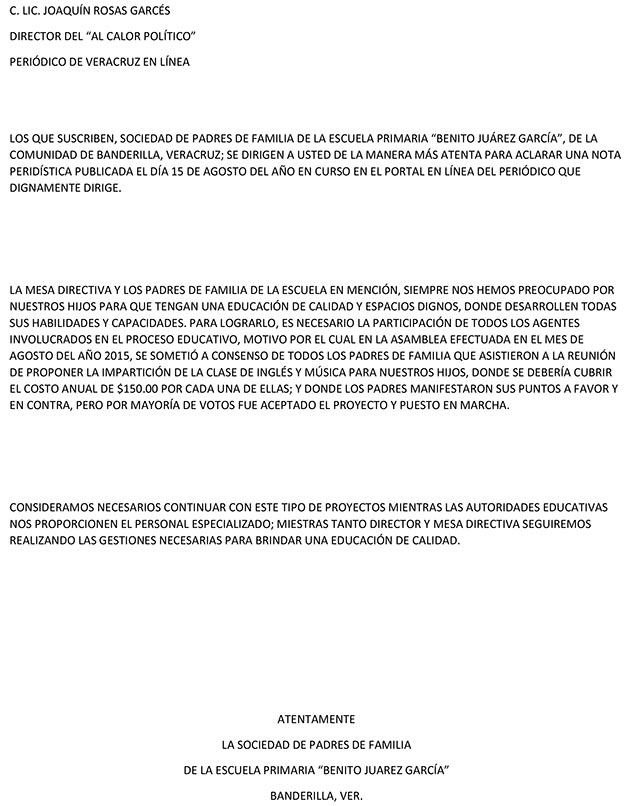 Costos extras en escuela “Benito Juárez”, en Banderilla, aprobados por mayoría de votos