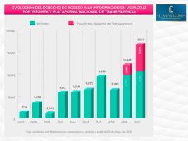 Detalló que en el 2018 se contabilizaban apenas por la plataforma INFOMEX mil 712 y al día de hoy suman las 19 mil 258. En el caso de los recursos de revisión, en el 2017 fueron 2 mil 424, que son mil 67 más que en 2016, pero en el 2008 apenas eran 214 y al día de hoy suman 2 mil 511.
