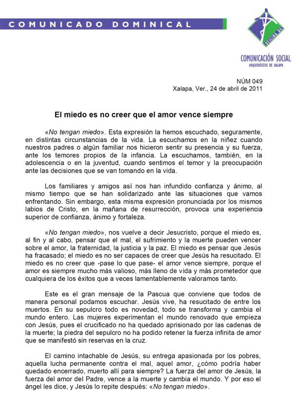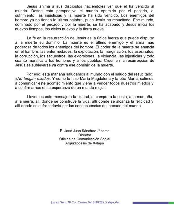-“No tengan miedo”, dijo al resucitar y hoy lo retoma la Arquidiócesis de Xalapa