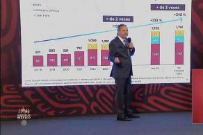 “En 2004 se llegaron a producir en México más de 3.3 millones de barriles diarios y que cuando comenzó esta administración llegamos a un millón 642 mil, es menos de la mitad, una declinación constante a los largo de 15 años. Este es el comportamiento de este sexenio. Partimos de la cifra de un millón 642 mil y año con año se ha habido venido incrementando la producción al punto de acuerdo con lo que nos instruyó el Presidente, de extraer solamente lo necesario para producir combustibles, ser autosuficientes en combustibles en el País”.