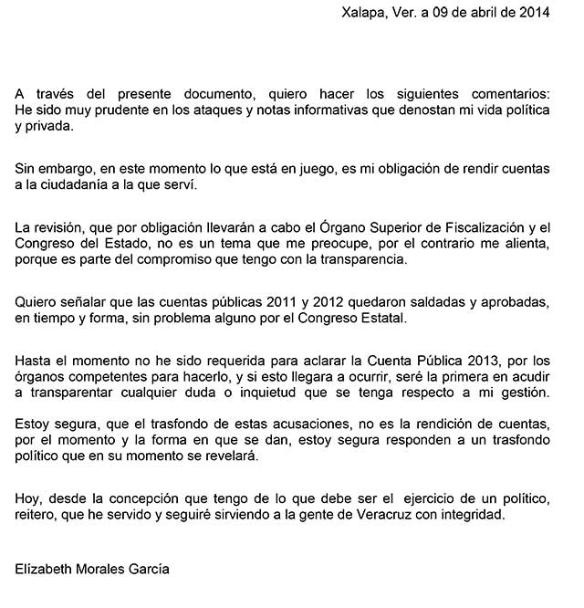 Cuentas de 2011 y 2012, saldadas; ORFIS no me ha requerido: Elizabeth Morales