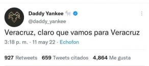 El cantante Daddy Yankee confirmó a través de su cuenta oficial de Twitter un concierto en Veracruz como parte de su gira de despedida "La última vuelta".