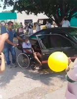 La señora Carmen, de la tercera edad, fue despedida entre globos y vítores, mientas salía del nosocomio en silla de ruedas y con cubrebocas, para ser trasladada a su domicilio y continuar su recuperación.