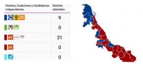 Por Veracruz al Frenteobtendría las nueve diputaciones restantes y de manera histórica, el PRI no obtendría ninguna victoria en el Estado.