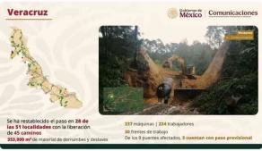 A nivel nacional, la SICT reportó que 202 de las 288 localidades afectadas ya cuentan con comunicación, siendo Veracruz la única entidad que mantiene comunidades aisladas.