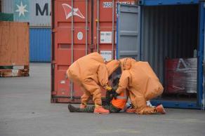 Durante el ejercicio, detalla SEMAR, se atendió lo que sucedería en caso de un riesgo químico. Para ello el escenario presentó un supuesto hallazgo de un contenedor que se creía vacío, pero cuando era transportado dio señales de llevar “carga no reportada”. La situación simulada mostró, tras una inspección por parte de la Unidad de Protección Portuaria número 32, que había sustancias de riesgo, por lo que al abrir el contenedor se generó una nube de humo que amenazó las inmediaciones y fue necesario activar los protocolos de emergencia.