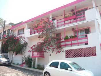 Igualamos el color de los bordes y balcones al de las buganvilias, para armonizar. Adelita, participante.