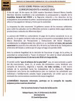 Definen que este 18 de marzo el secretario general de la organización sindical, Marco Aurelio Martínez Sánchez, manifestó a las autoridades la preocupación y repudio de la Asamblea general del Sindicato a la flagrante violación a los derechos de los trabajadores al "escamotear" la prima vacacional que por primera vez en más de 30 años no fue pagada en tiempo y forma por la autoridad.