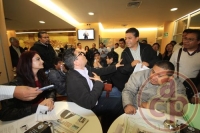 Durante la conferencia de prensa fue encarado por un grupo de priístas que le manifestaron que ganó la diputación federal por el voto de castigo al Revolucionario Institucional.
