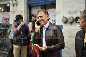 El Gobernador ofreció una entrevista “banquetera” en el Centro de la ciudad, cuando se dirigía caminando al Palacio de Gobierno, acompañado de sus escoltas y saludando a la gente.Â