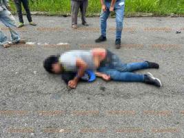 El motociclista quien dijo llamarse Josué Irán Olmos Peña, quedó tirado herido sobre la carretera.