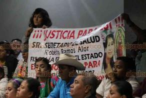 Madre, familiares y amigos de la joven Yesenia Vargas Licona, quien falleció el pasado 14 de mayo de muerte materna en el Hospital Regional de Papantla, a consecuencia de una negligencia médica, se manifestaron durante la comparecencia del secretario de Salud, Roberto Ramos Alor.