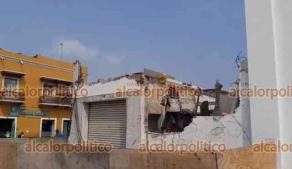 Esta mañana inició la demolición de 2 locales de la antigua plaza de artesanías “Miguel Alemán Valdés” ubicados en la calle Landero y Coss.