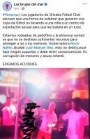 “Los jugadores de Orizaba Futbol Club piensan que una forma de celebrar que ganaron una copa de futbol es llevando a una niña a un centro de explotación sexual para que les bailara en un tubo”, expresaron en su redes sociales.