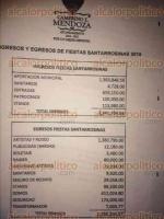 El ayuntamiento de Ciudad Mendoza no ha invertido recursos para la construcción de obra pública pero habría gastado 2.5 millones de pesos para la realización de las Fiestas Santarrosinas, dinero que además se niega a transparentar, denunciaron dirigentes del PRD en Veracruz y de MORENA.