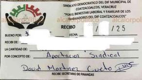 Los inconformes señalaron que, además del pago inicial, varios trabajadores entregaban hasta mil pesos mensuales, recibiendo incluso recibos como comprobante de dichas aportaciones. Pese a ello, cuando comenzaron los despidos, el líder sindical no brindó respaldo legal ni defensa laboral.