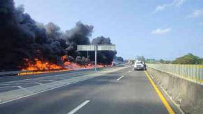 Derrame de diésel incendió la autopista de Tuxpan