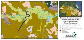 El Instituto muestra que el ducto cruza la cabecera municipal desde Ejido Chapopote hasta Estero del Ídolo, pero que la descarga de hidrocarburo trazó una línea de 16 kilómetros.