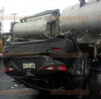 Derrapa y vuelca auto en la carretera, a la altura de Chichicaxtle, en Puente Nacional