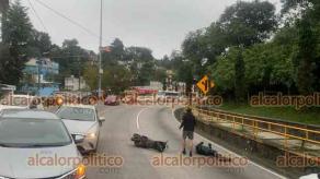 Derrapó motociclista sobre la calle Bolivia, en Xalapa, este miércoles