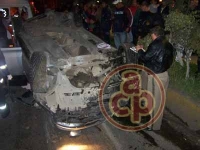 Tras caer el auto de una altura de aproximadamente 15 metros derrapó sobre el carril de circulación unos 30 metros quedando finalmente llantas arriba, con su conductor atrapado en el interior.