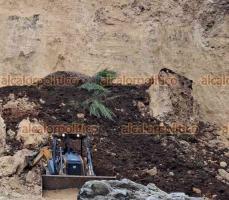 Derrumbe en cantera de piedra sepulta a trabajador y excavadora en Ixtac