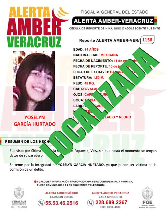 La Coordinación Estatal del Programa AAMBER-VER, informa la desactivación de las Alertas Amber: