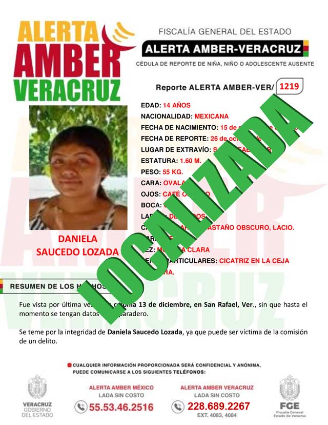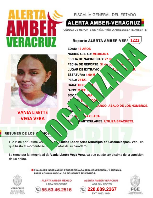El programa Alerta Amber Veracruz, solicita su colaboración para la desactivación de las Alertas Amber-VER: