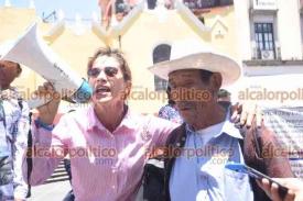 Habitantes de Sierra Alta, del municipio de Coatepec, volvieron a manifestarse frente al Palacio de Gobierno para exigir que les devuelvan las tierras de las que fueron desalojados de manera definitiva en febrero de este año, de las cuales el actor Ari Brickman forma parte de los propietarios.