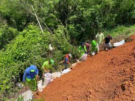 Se atiende el punto que fue socavado por la corriente de agua, el cual afecta 50 centímetros de la carpeta, a partir del hombro del camino, el cual está en reparación mediante la construcción de un canal para que, en caso de que se presenten más lluvias, el agua se dirija hacia la cuneta existente.