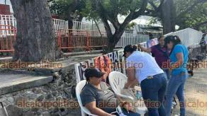 Alrededor del recinto del fraccionamiento Virginia ya colocaron sillas y bancos para apartar los espacios