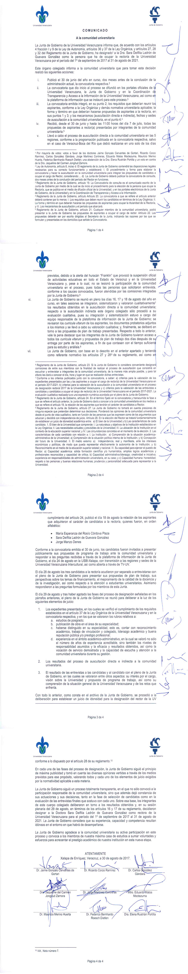 Poco después de las 14:00 horas, el órgano colegiado subió el comunicado sobre la designación de Ladrón de Guevara e informó a la comunidad universitaria que para tomar esta decisión realizó las siguientes acciones: