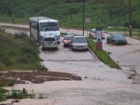 Los residentes tuvieron que esperar a que dejara de pasar el agua y quitaran el lodo