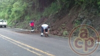Al lugar arribaron personal de Protección Civil de esa ciudad, para remover la tierra y piedras, que bloquearon por unos momentos un carril de dicha carretera y evitar que algún automovilista pudiera tener algún accidente, así lo informó Miguel Geixpan Polito titular de PC de Catemaco.