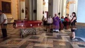 El sacerdote Lázaro Prado Evangelista ofició la misa de cuerpo presente a donde se congregaron allegados a los fallecidos, quienes no dan crédito de la tragedia que sucede en torno a la familia García.