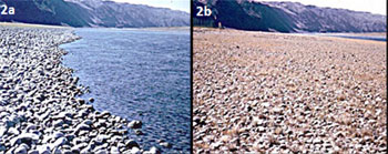 En las figuras 1 y 2 se presentan dos casos de cómo se aprecia un río o una laguna durante la temporada de lluvias (1a y 2a) y durante la temporada de estiaje (1b y 2b).