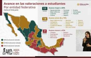 “El Estado se encuentra en un rango de entre 46 y 79 por ciento de valoraciones realizadas”, precisó el funcionario, al detallar que Veracruz forma parte de las 14 entidades con ese nivel de cumplimiento, junto con Baja California Sur, Campeche, Chihuahua, Ciudad de México, Jalisco, Morelos, Nuevo León, Puebla, Querétaro, San Luis Potosí, Sonora, Tabasco y Yucatán.