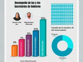 Así los resultados de esta evaluación que lleva como punteros a la Secretaría de Educación de Veracruz Claudia Tello Espinosa y al Secretario de Finanzas y Planeación Miguel Reyes Hernández.