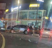 La madrugada de este viernes, en el cruce de Araucarias con la avenida Lázaro Cárdenas, en Xalapa, un automóvil Nissan March negro provocó un choque que involucró a 2 vehículos más, lo que dejó como saldo 2 personas lesionadas y un conductor detenido.