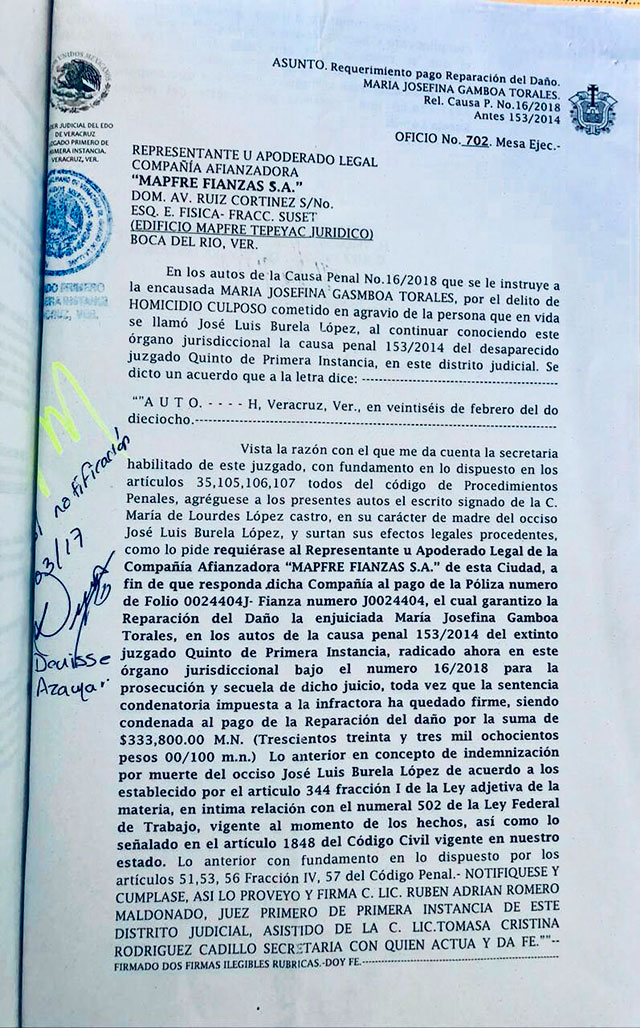 Cabe señalar que dicha sentencia marca que la panista tenía que resarcir el daño a familiares de la víctima, por una cantidad de 333 mil 800 pesos.