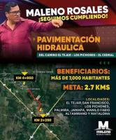 “La realidad es que nuestra administración hizo ese compromiso desde el año pasado con nuestros paisanos de San Francisco, Moreno Seco y Pichones. Tan es así que la meta es 5.4 kilómetros los que se pavimentarán y no la información falsa de 2.7 kilómetros”, expuso el Presidente Municipal.