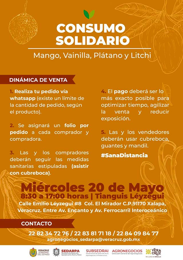 El secretario de Desarrollo Agropecuario, Rural y Pesca, Eduardo Cadena Cerón, invitó a otra Jornada de Consumo Solidario en Xalapa, ahora con mango, vainilla, plátano y litchi, traído directo desde el campo a la Capital.