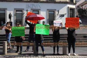 Profesores y personal administrativo del Colegio de Estudios Científicos y Tecnológicos del Estado de Veracruz (CECyTEV) se manifestaron frente al Palacio de Gobierno para denunciar despidos injustificados, nepotismo y varias irregularidades cometidas por el director de los planteles, Javier Baizabal Cordero.