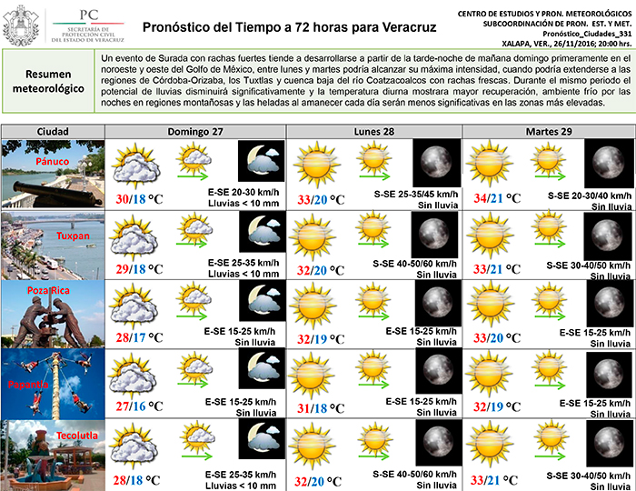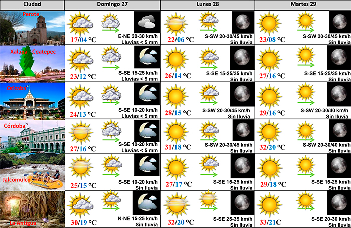Disminuirán lluvias y aumentará la temperatura diurna; “surada” a partir de la tarde de mañana domingo y hasta el próximo martes; noches muy frías en montañas