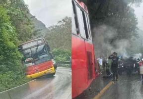 El primer percance se registró en las curvas ubicadas a un costado del río Matzinga, en el tramo entre Tlilapan y San Andrés Tenejapan. Un autobús Adelas, con número económico 114, perdió el control debido al exceso de velocidad y la lluvia, por lo que quedó varado sobre la carpeta asfáltica y requirió el apoyo de una grúa para ser retirado.