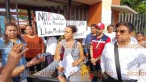 Docentes tomaron la Escuela Secundaria y de Bachilleres de Artes y Oficios (ESBAO) para exigir que siga la directora Lluvia Medina, pues les informaron que este jueves llegará un nuevo encargado que no es del sindicato y no están de acuerdo.