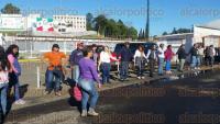 Profesores de diferentes puntos de la entidad se manifestaron en el Complejo Omega, para impedir la aplicación del examen a quienes aspiran a ser evaluadores, pues aseguran que tal proceso es una farsa.